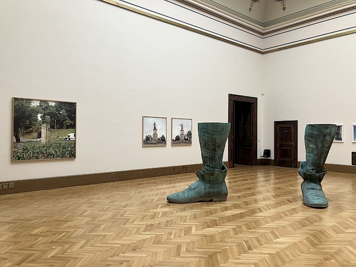 In Štefančíková’s performance, invisibility emerged less as an object and more as a gesture. It was as if the group were building a monument we could not see, an edifice made of silence, sound, and fleeting movement. This resonated with Argote’s work, especially Who?, where only two giant bronze feet remain of a once-whole statue, prompting us to imagine the absent body. The Letná site itself is haunted by absence: the Stalin Monument, once the largest statue of him in the world, now gone, leaving behind only its pedestal and the weight of history. Watching the movements of the group, I felt the performers conjuring a ghost monument, fragile and invisible, layered onto the absent Stalin. The history of the destruction of the statue, in 1962, is as rife with complications and dark shadows as the history of its construction in 1955. According to certain urban legends, the enormous stone head of the soviet dictator is still hidden somewhere in Prague.