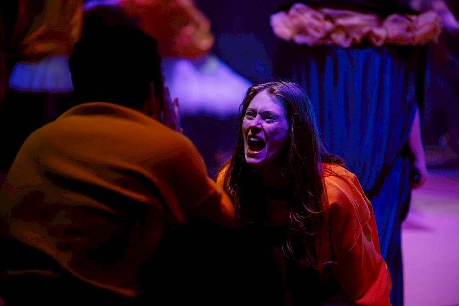 Výzva k řevu adresovaná diváctvu, které má také možnost ventilovat emoce, přichází hned na začátku, tedy ještě předtím, než nás inscenace zavede dál. Osobně bych ji ale ocenila spíše později, ve chvílích, kdy herci mluví o svých nejtěžších zážitcích a sami dávají průchod nevyventilovaným emocím například skrze krump, řev nebo zpěv, protože právě tehdy jsem křičet chtěla, ale nemohla.