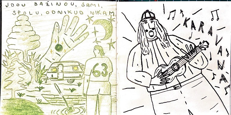 Ne často si může běžný divadelní publicista napsat reflexi, která nebude stát jen na textu, ale i na jeho infantilních ilustracích a obrázcích, které si po prožitém divadelním zážitku zachytí do skicáku. Ve Spoře se občas snažíme hranice „běžných“ recenzí překračovat a zkoušet formáty pro nás samotné neznámé. Premiéra imerzivní inscenace Projektu Pomezí Karavana mi přesně k tomu nabídla podnět.