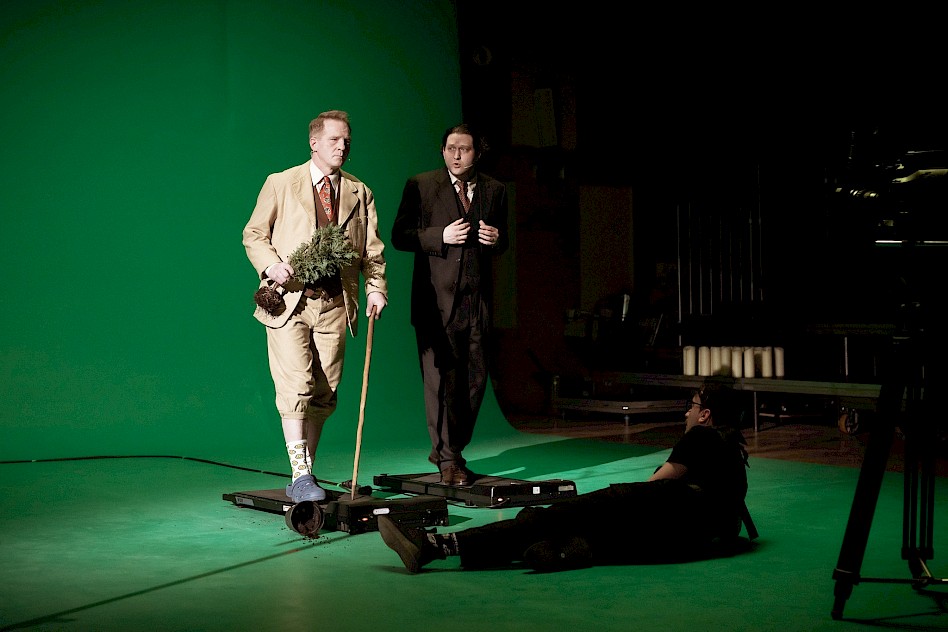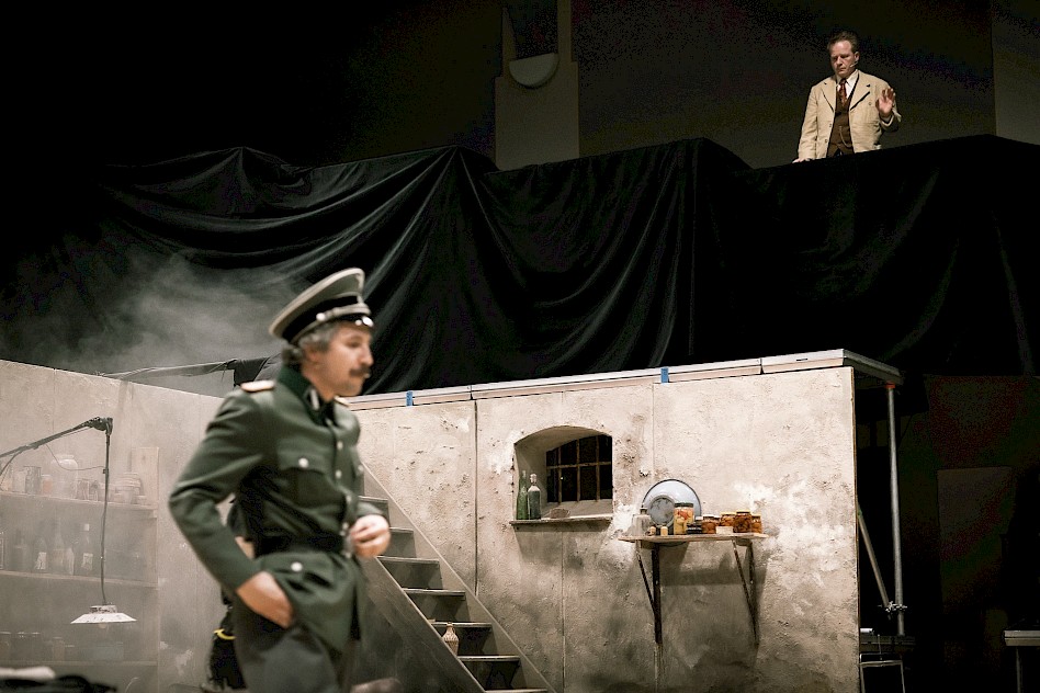 Analogie dvou osob, jež jsou v naprosto odlišném kontextu obětmi svých vlastních vizí, ale dostatečně nezdůvodňuje propojení příběhu československého magického odboje s filmovým rámcem, který slouží spíš jen jako ozvláštnění inscenace. Naopak z herce ztvárňujícího nacistického důstojníka (Andrej Lyga), jenž si přenáší fikční názory a úlisnost i do běžného života, až mrazí. Komickou postavou je herec Pavla Baťka, který se s úkolem ztvárnit nejrozporuplnějšího československého státníka vyrovnává – jak jinak než – dlouhými debatami nad pivem.