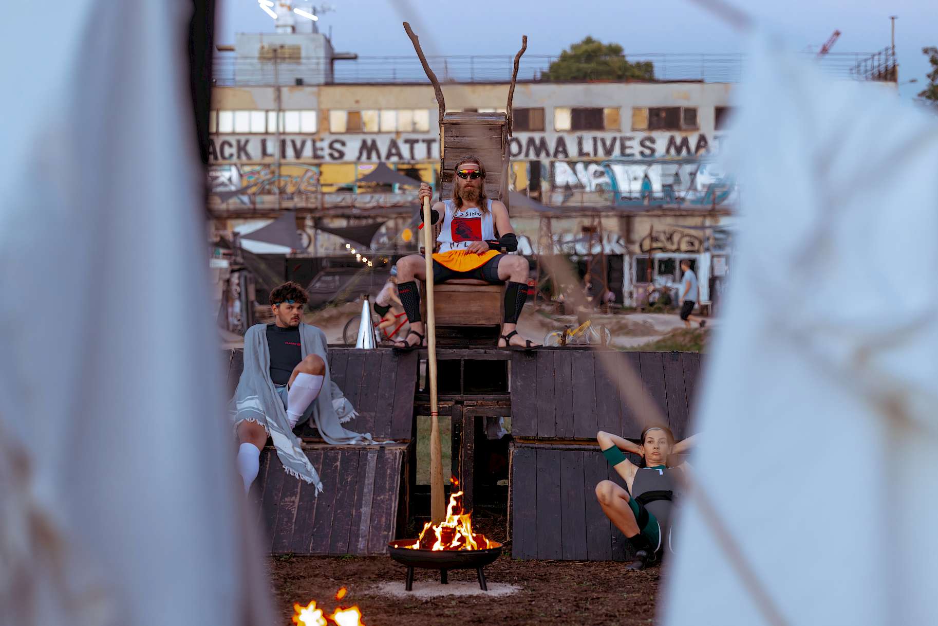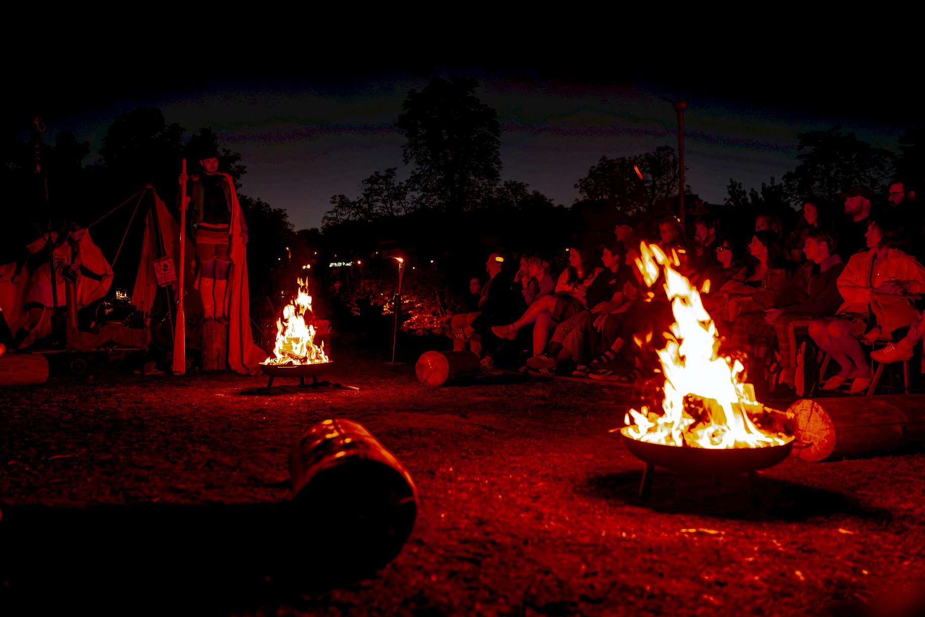 Mé představení totiž narušil déšť, a tak se z louky a dřevěného torza lodi přesunulo do sálu VILY Štvanice. Argonauti ale na světle jisker a vůni dýmu stojí, protože budují atmosféru táborové skupinové terapie. Čtveřice herců a herečka udrželi dojem sounáležitosti i pod střechou, jen ne dostatečně dlouho. I ve světle většího plamene by ale jistě vynikla únavná délka inscenace založené primárně na řetězících se statických vyprávěních.