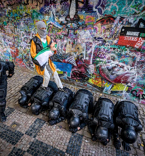 Direct Action Theatre je norsko-český projekt volně sdružených umělců pod vedením výtvarně zaměřeného umělce a aktivisty Jana Hustáka a jeho ženy, performerky a režisérky, Nely Kornetové. 30. září provedli spolu s dalšími členy kolektivu v Praze působivou intervenci do veřejného prostoru, která měla podobu performance upozorňující na bezpráví a utrpení lidí v Palestině a výslovně tak předvedla, jak to vypadá, když se stírají hranice mezi uměním a aktivismem.